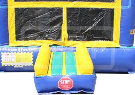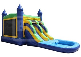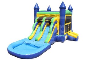 This large bounce castle and slide has it all. It includes 2 slide lanes with their own climb up stairs on the inside. Both slide down in to a huge pool. There's also an attached bounce house area that includes a basketball hoop. This is a can't miss bounce house rental for any birthday party or event. L: 27' x W: 13' x H: 13' We set up the day of your party and pick up the following day.