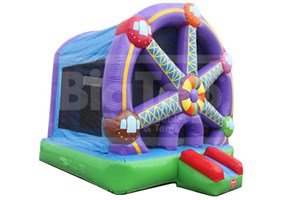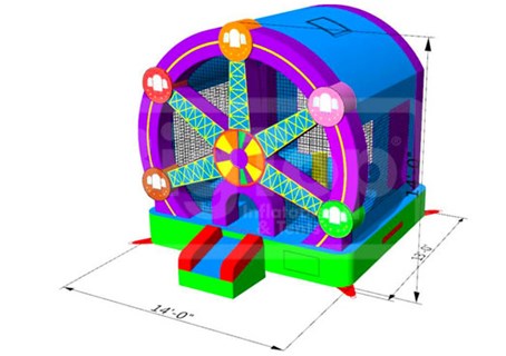 Ferris Wheel Bounce House. This Commercial Grade Bounce House is great for birthday parties, events, recreation centers and more. This theme is always a popular seller and is appealing to both boys and girls of all ages. L: 14' x W: 13' x H: 14' - 220 Lbs