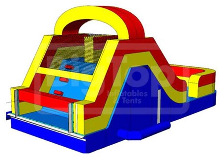 The 18' Red Water Slide features 2-Slide Lanes separated for enhanced safety and rider throughput. This exciting unit can be setup as a stand-alone inflatable or you have the option to connect to one of our Fun, Obstacle Courses. 35Lx11Wx18H We set up the day of your party and pick up the following day.