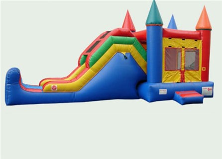 The Castle N Slide Module Combo offers a Bouncing / Climbing / Sliding Area with the option to add module art panels to the front of the unit. L: 24' W: 11' H: 13' We set up the day of your party and pick up the following day.