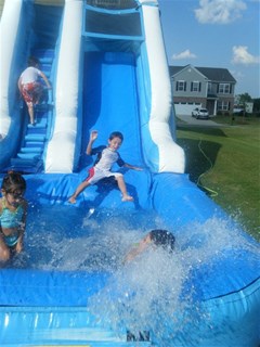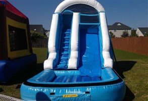 Our most popular Wet n Dry Slide! This one goes fast in the summer so please reserve early. This huge slide is 13' feet tall and splashes down in a pool of water. L: 22' x W: 10' x H: 13'