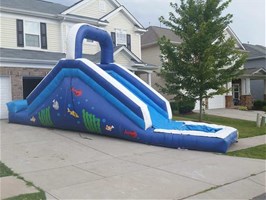 This fun back yard inflatable water slide is huge. Just add water to have a lot of fun.