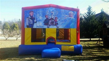 Does your special one love the Disney movie Frozen? Then check out this new Disney Frozen banner for our bounce houses. We are excited to have this option for all those kids who love Frozen. This is pictured with our 15 by 15 bounce house. These larger bounce houses give kids the room they need to have fun. Keep a hot summer day cool with Disney's Frozen banner! As always, free delivery, setup and pick-up to anywhere with in 25 miles of Charlotte, NC.